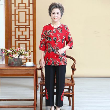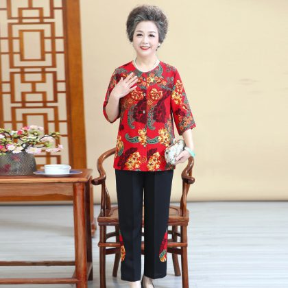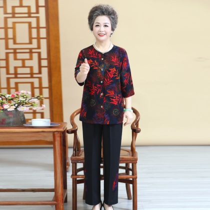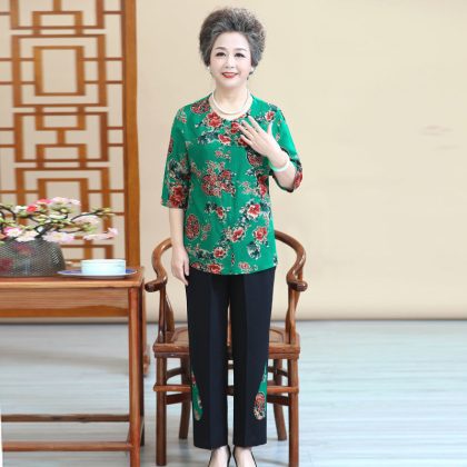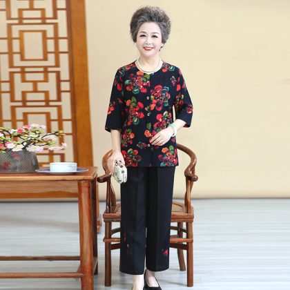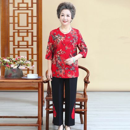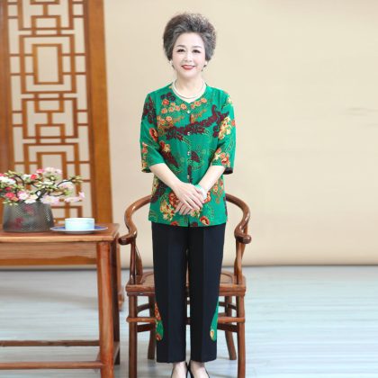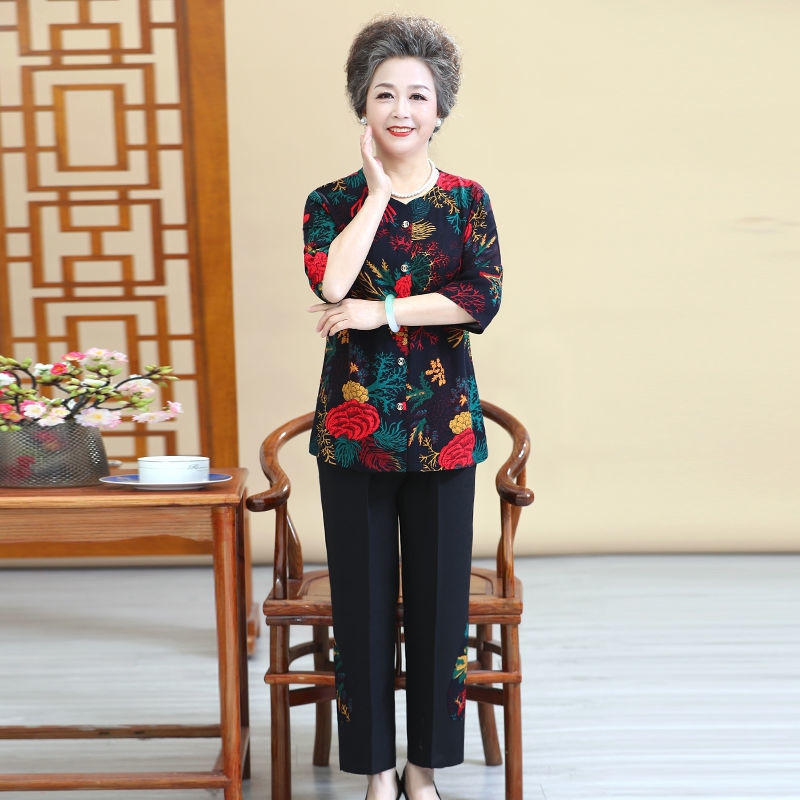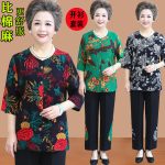 Summer clothes for middle-aged and elderly people Grandma dresses imitation cotton and linen suit 60-70-year-old mother's short-sleeved T-shirt for the elderly