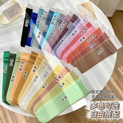 | nameOriginal | Summer Cold Ice Socks Thin Velvet Sweat Absorbent Breathable Stacked Socks Women's Macaron Solid Color Curled Socks |