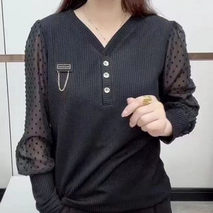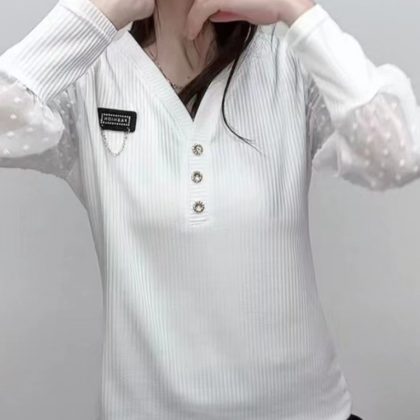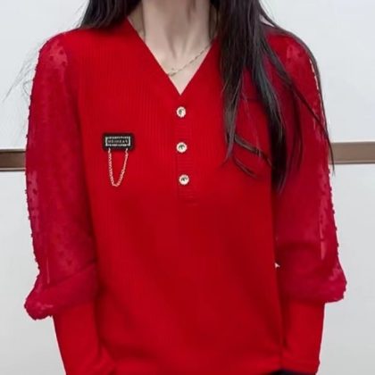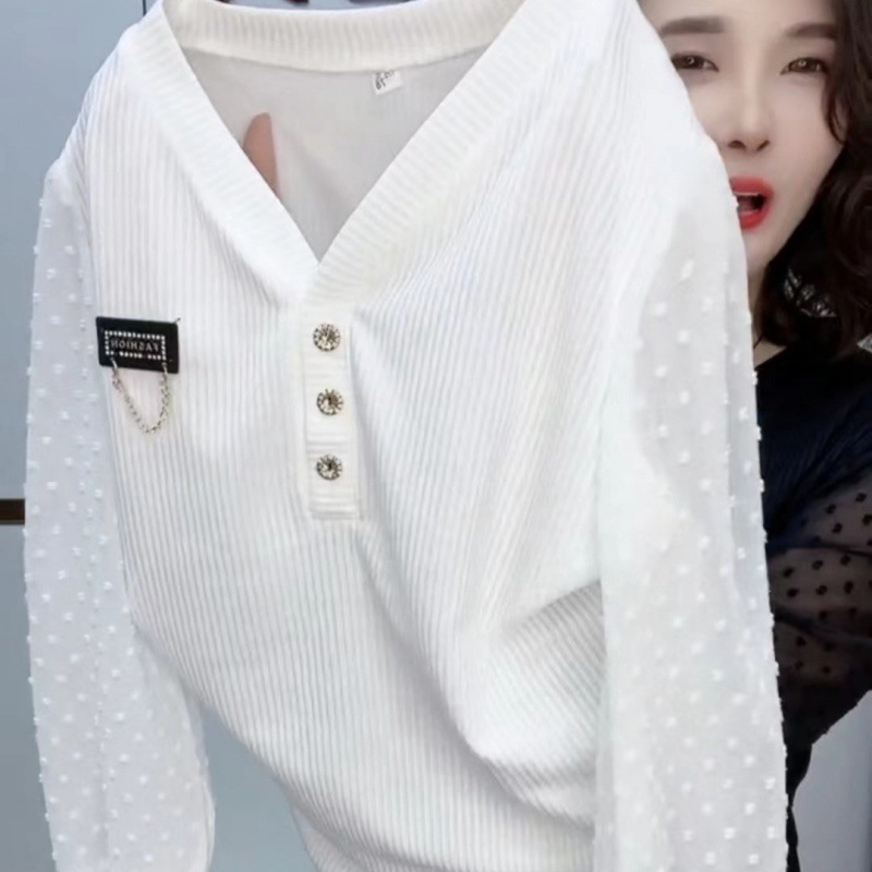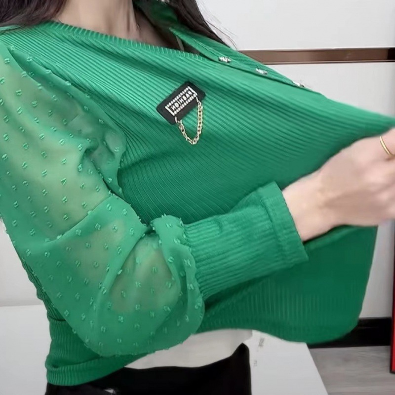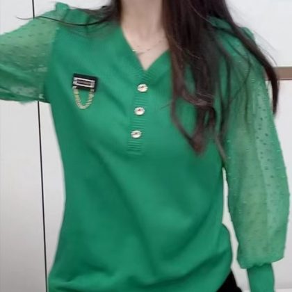 nameOriginal | Summer collar thread cotton chiffon sleeves February and August wear base shirt spring and autumn loose meat covering three-button outer wear top |