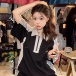 | nameOriginal | Summer Contrast Color Stitching Polo Collar T-shirt Round Collar Heavy Couple Top Ins American Academy Style Short Sleeve T-shirt for Women |