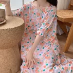 | nameOriginal | Summer cotton silk nightgown for women, anti-bump extra large size, sweet round neck printed cotton silk skirt, can be worn as home wear long skirt |