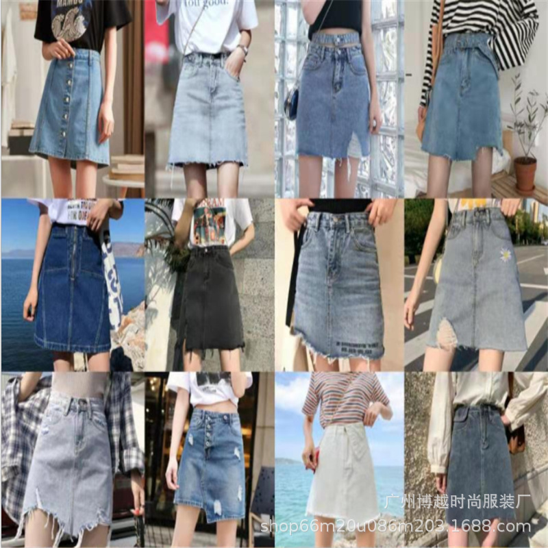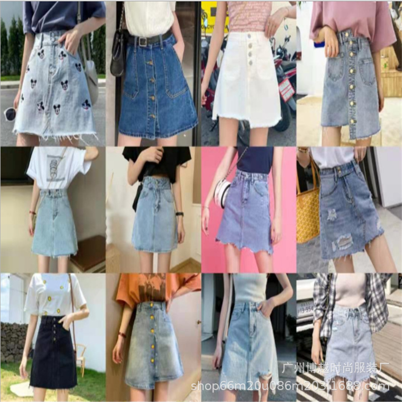 تنورة الدنيم الصيفية أزياء التجارة الخارجية الساخنة غير النظامية فضفاضة الورك الدنيم بالإضافة إلى حجم تنورة توريد المصنع