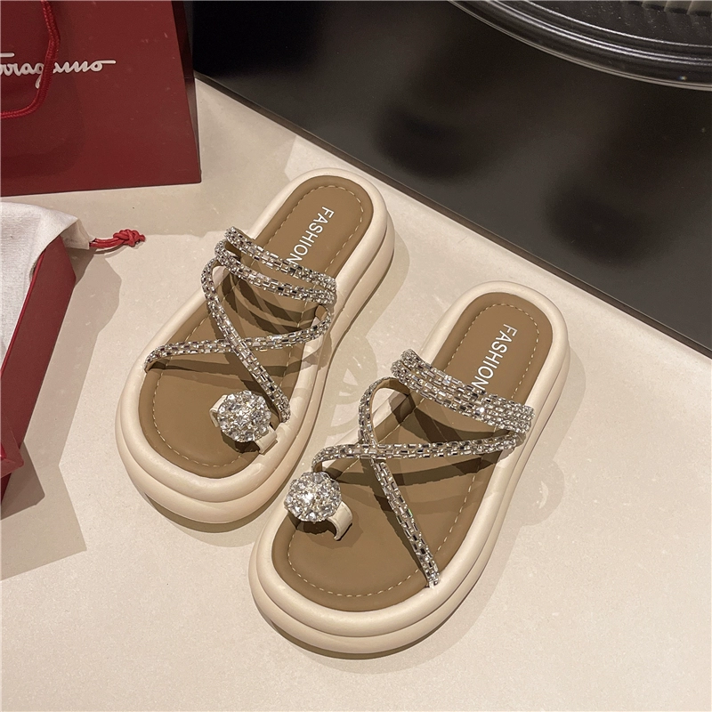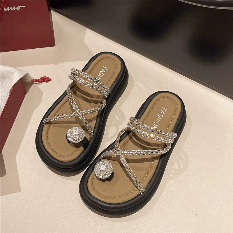 | nameOriginal | Summer double-wear high-end rhinestone flip-flops thick-soled sandals  |