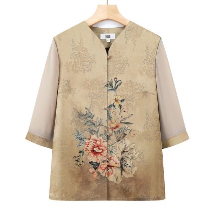 | nameOriginal | Summer Dress for the Elderly Silk-like Shirt for Grandma Spring Dress Shirt for Mom suit Short-sleeved Top for Old People and Mother-in-law |