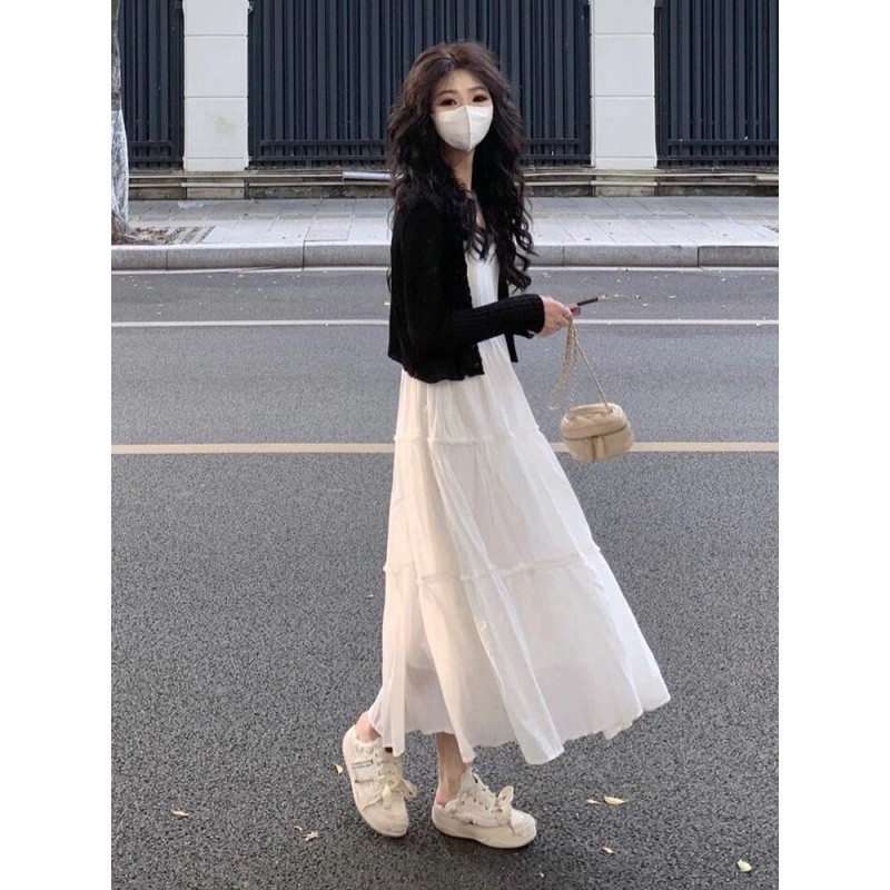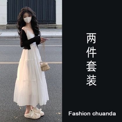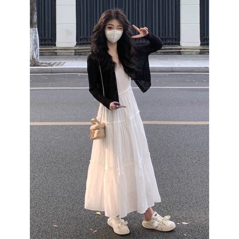 | nameOriginal | Summer dress with a set of 2024 fashion new slim slim black cardigan super fairy princess style dress women |