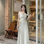 فستان صيفي أنيق بأكمام قصيرة مع أقراط بأربطة