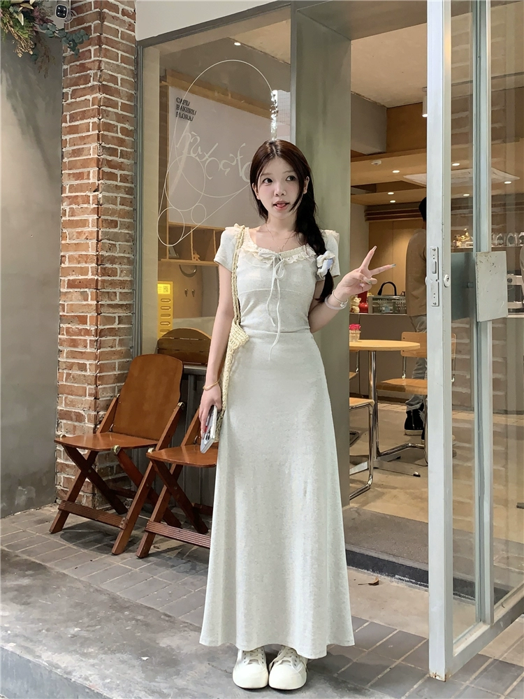 Summer elegant short-sleeved dress with earrings lace-up