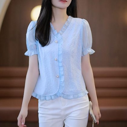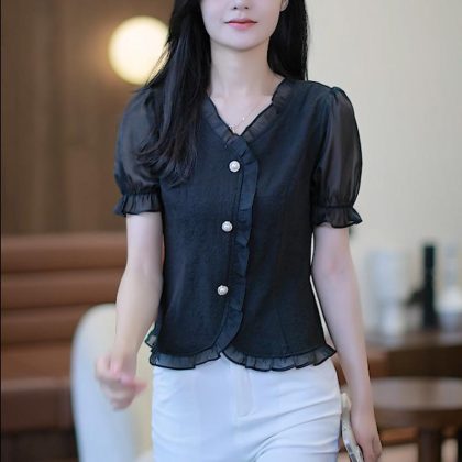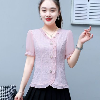 | nameOriginal | Summer Elegant Soft Lace Western Style Short Sleeve Top Women's New Fashion Shirt Collar Chiffon Shirt |