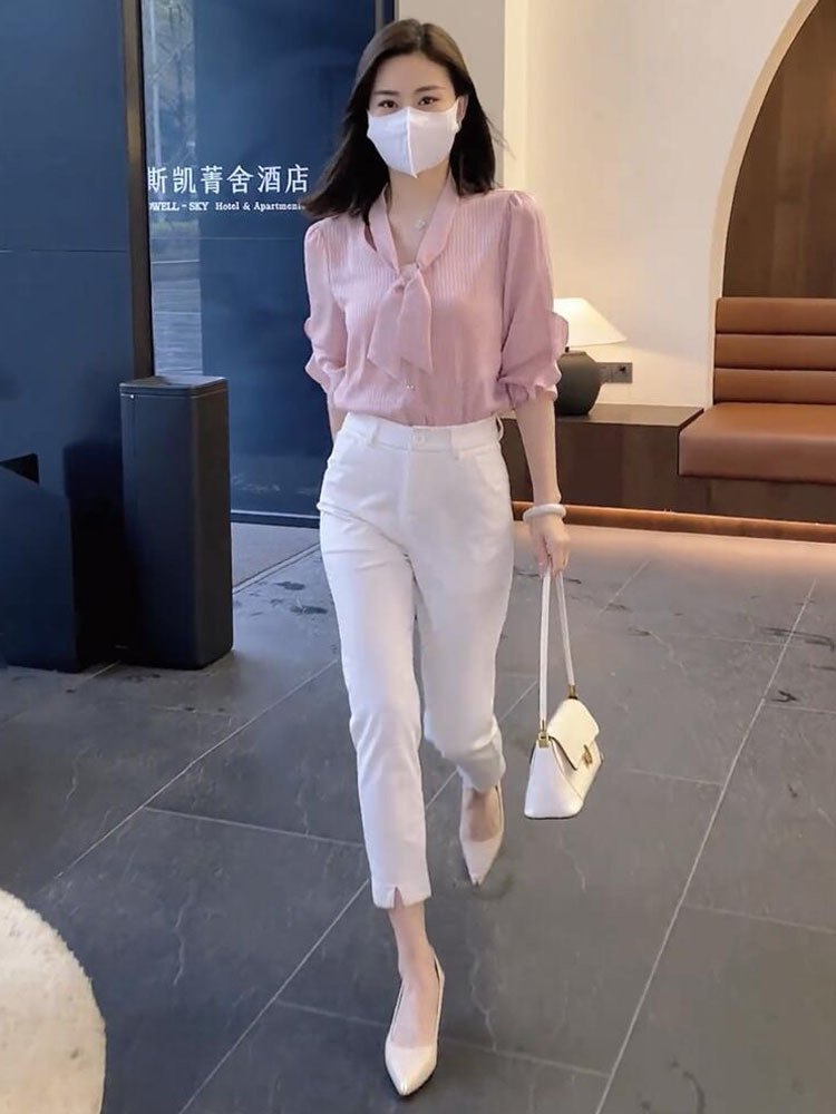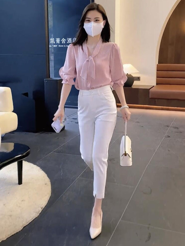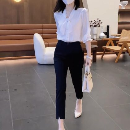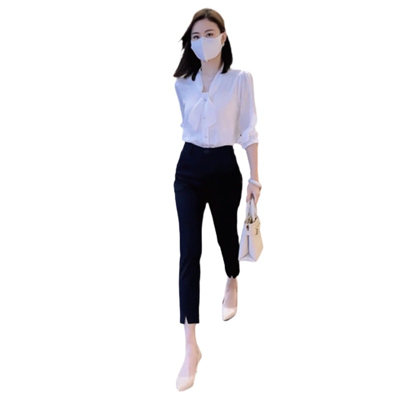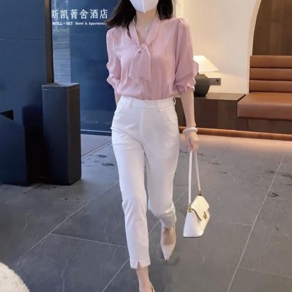 | nameOriginal | Summer Fashion Striped Dress Half-sleeve Shirt Two-piece Set High Temperament Small Man Suit Pants Professional suit Women |