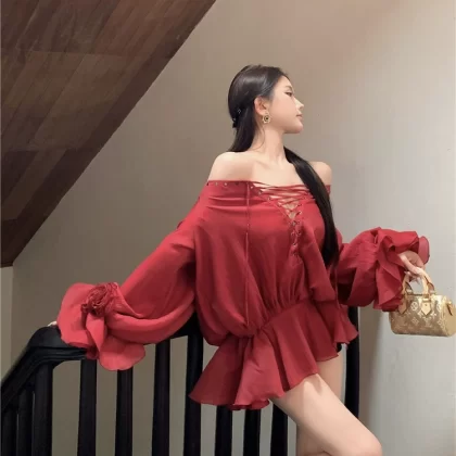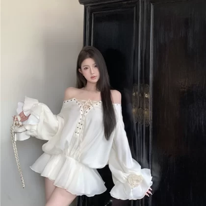 | nameOriginal | Summer French flower one-shoulder strap dress |