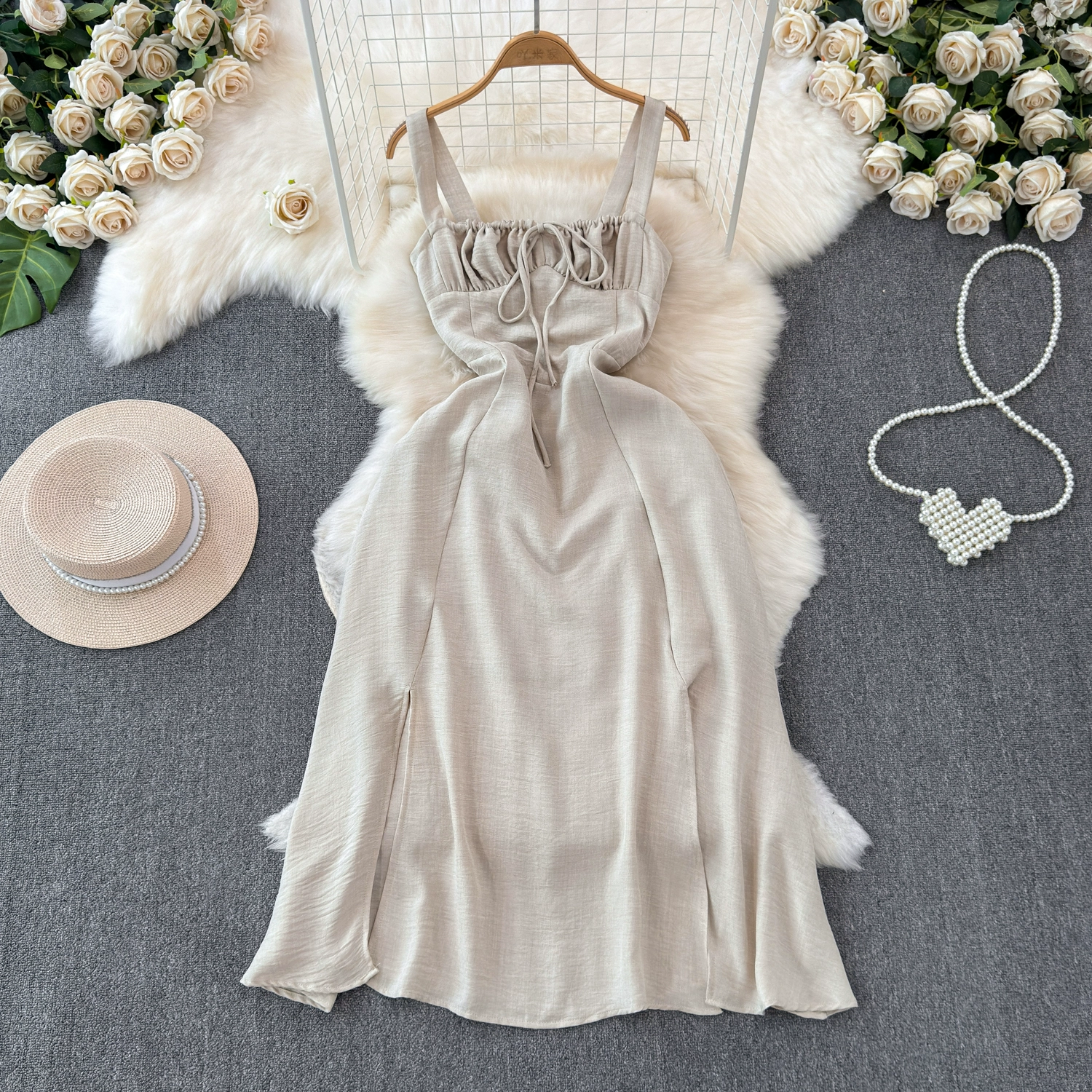 | nameOriginal | Summer French high-end travel photo long dress for seaside vacation backless waist slimming A-line suspender dress |