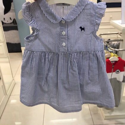 Summer fresh vertical striped flying sleeve shirt dress children's clothing