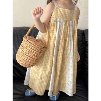 Summer Girls' Plaid Western Style Dress Sleeveless Baby's Slip Skirt Floral Skirt Long Skirt Vat Skirt Korean Style