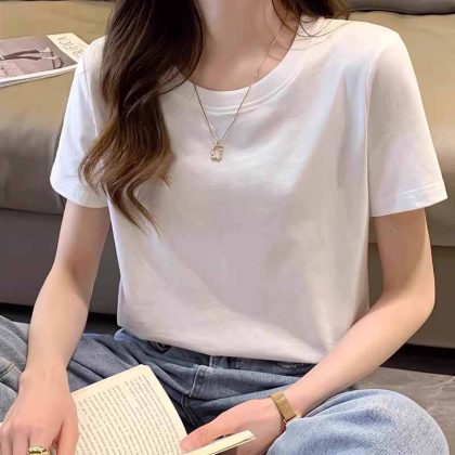 | nameOriginal | Summer Heavy Cotton Short-sleeved T-shirt Women's Korean-style Loose White-fit Women's Shoulder Top Base Shirt White T-shirt |
