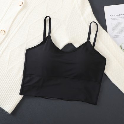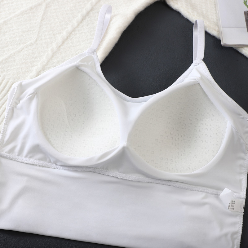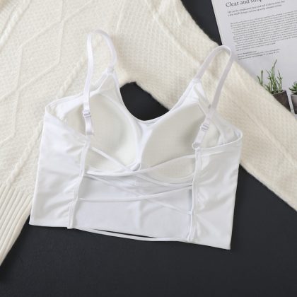 Summer ice silk hollow backless beauty back strap fixed Cup sports wrapped chest tube top underwear adjustable shoulder strap anti-exposure