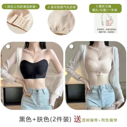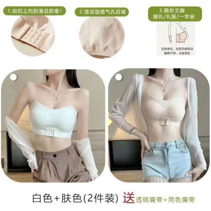 ملابس داخلية نسائية صيفية من الحرير الجليدي بدون حمالات ملابس داخلية نسائية صغيرة رافعة للصدر مانعة للانزلاق غير ملحقة صدرية غير مرئية