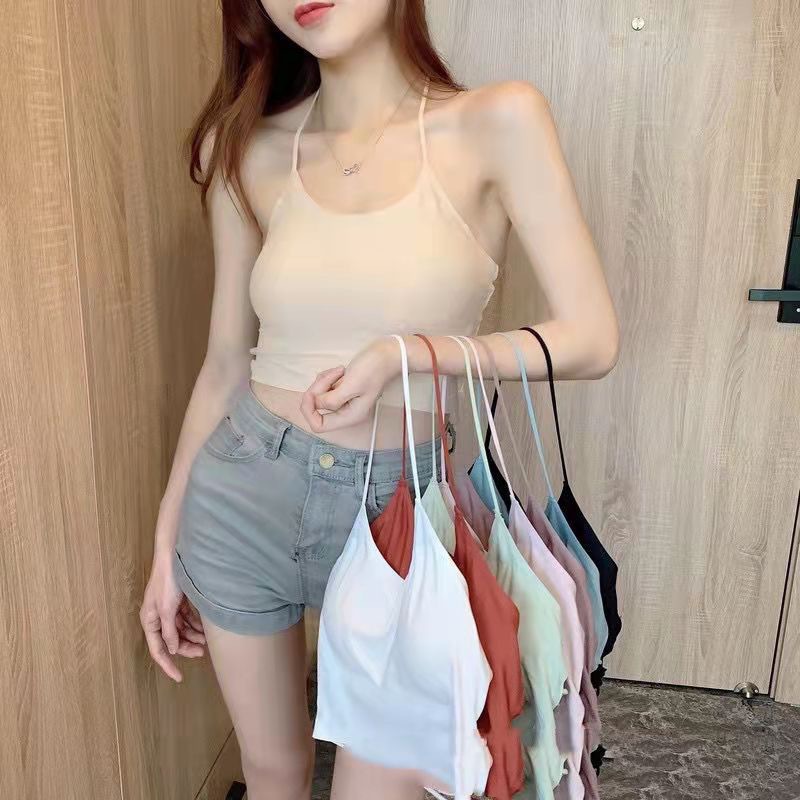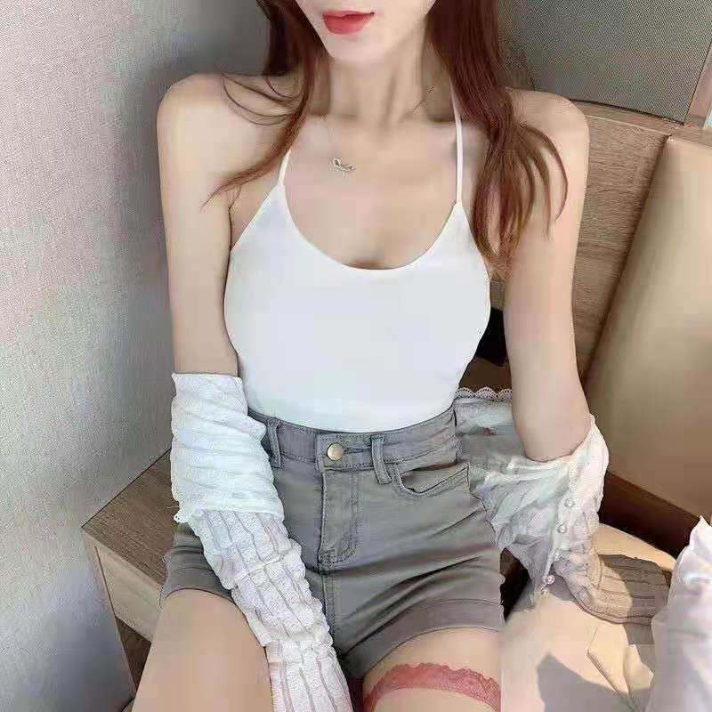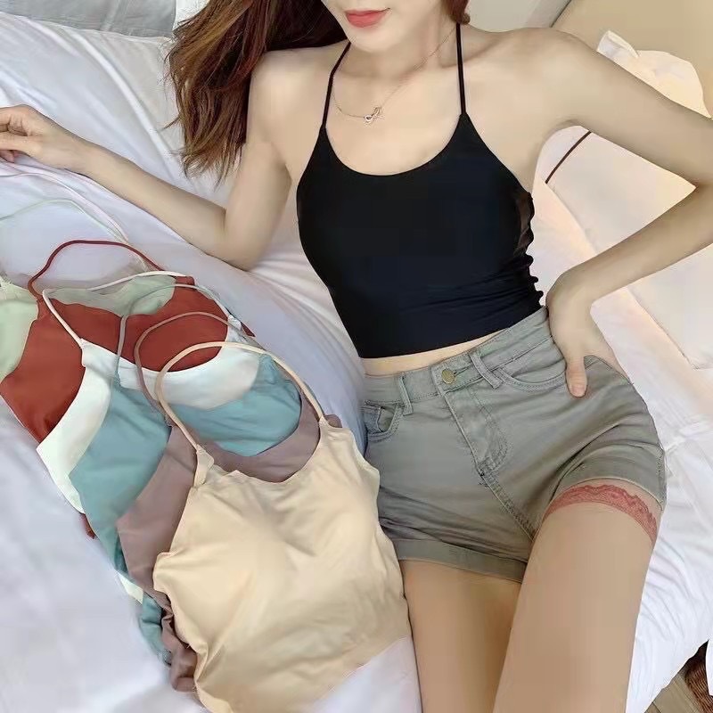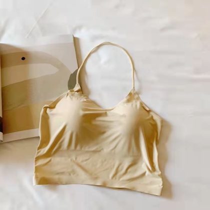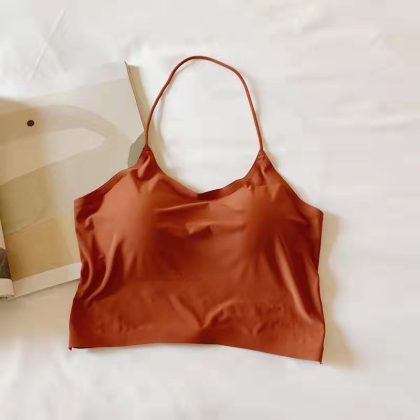 Summer Ice Silk Wrap Chest Hanging Neck Beauty Back Traceless Base Inner Bodywork Outer Wear Cross Design Short Underwear for Women
