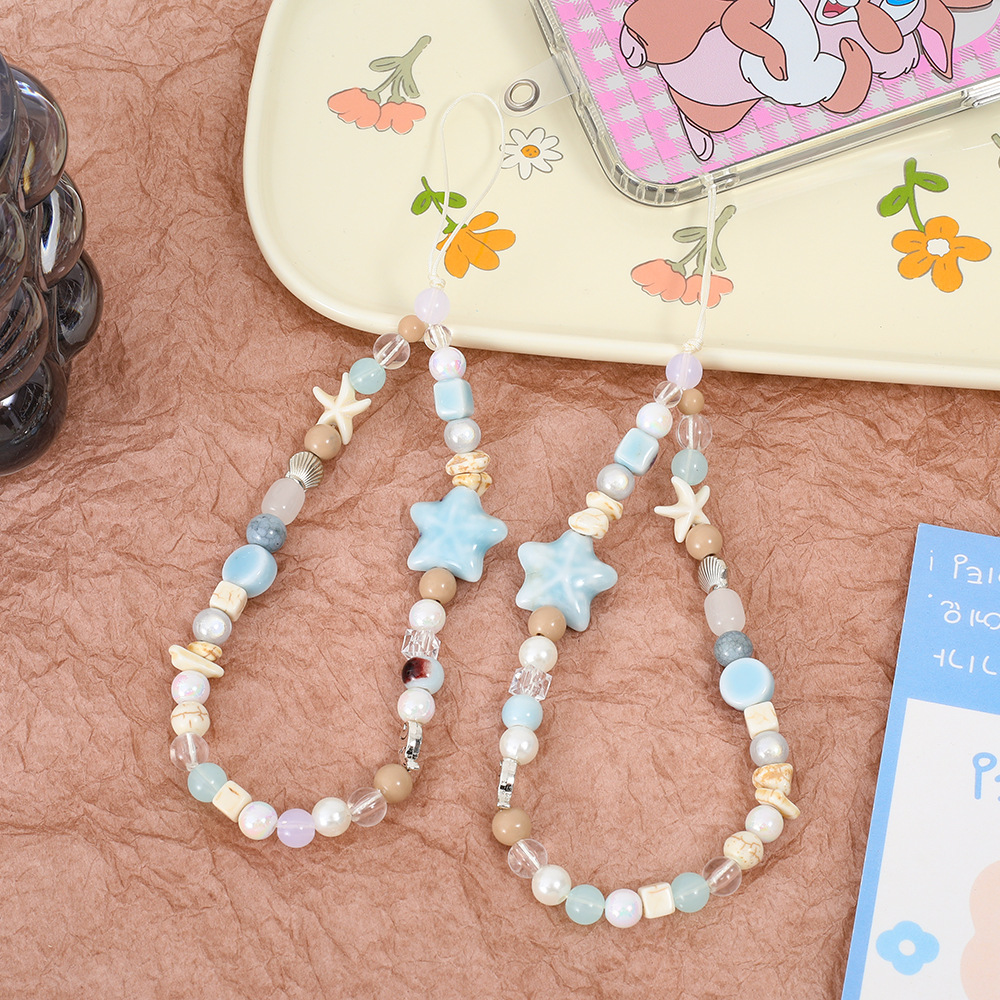 | nameOriginal | Summer ins sea breeze stars mobile phone chain fresh ccd lanyard diy pendant camera blue beads |