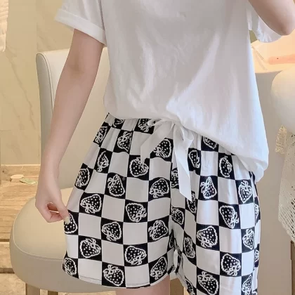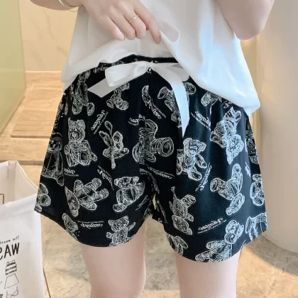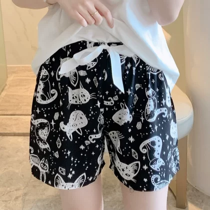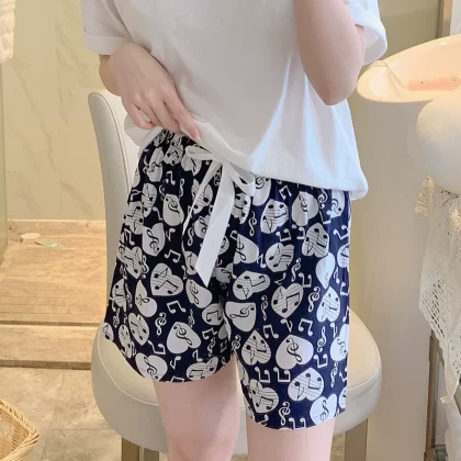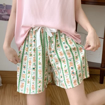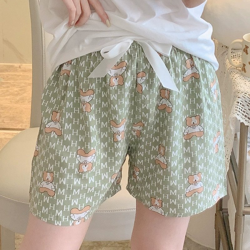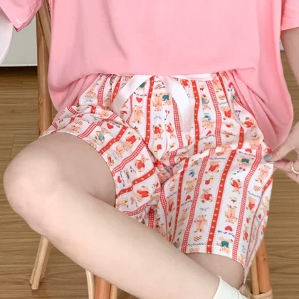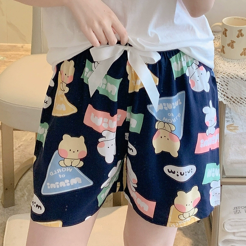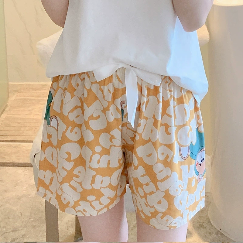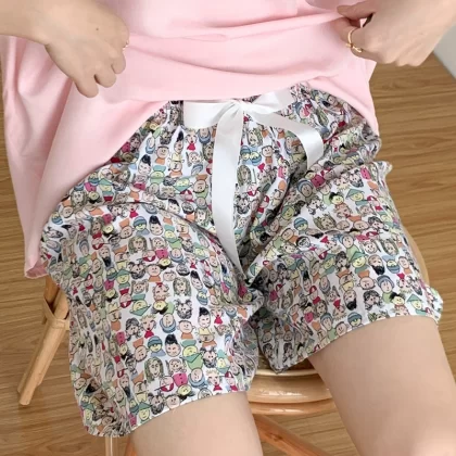 Summer Japanese style shorts for women home printed cartoon cotton silk