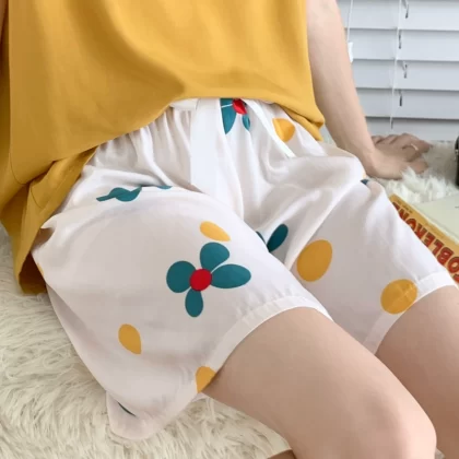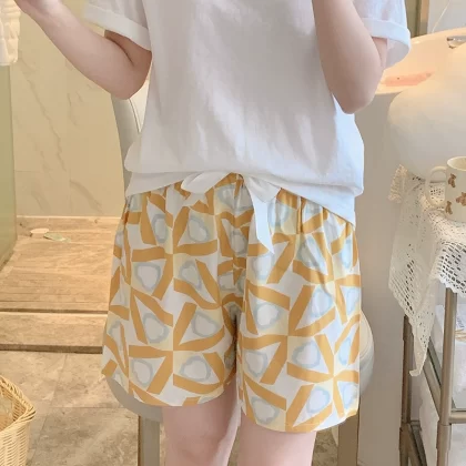 السراويل اليابانية الصيفية للنساء في المنزل الحرير القطنية المطبوعة