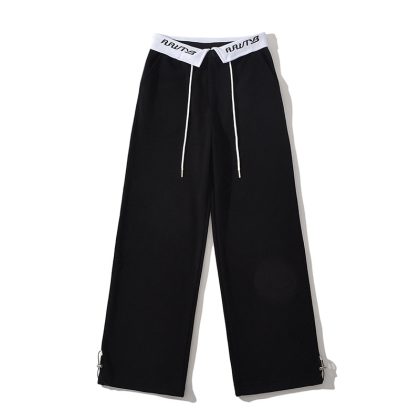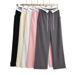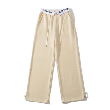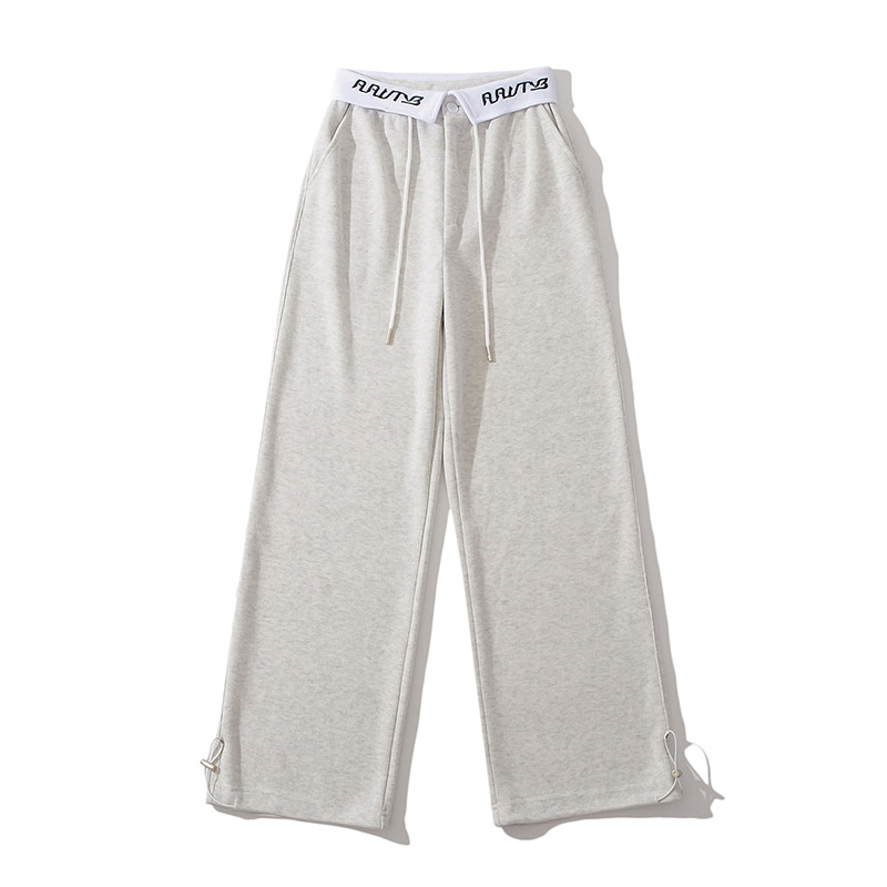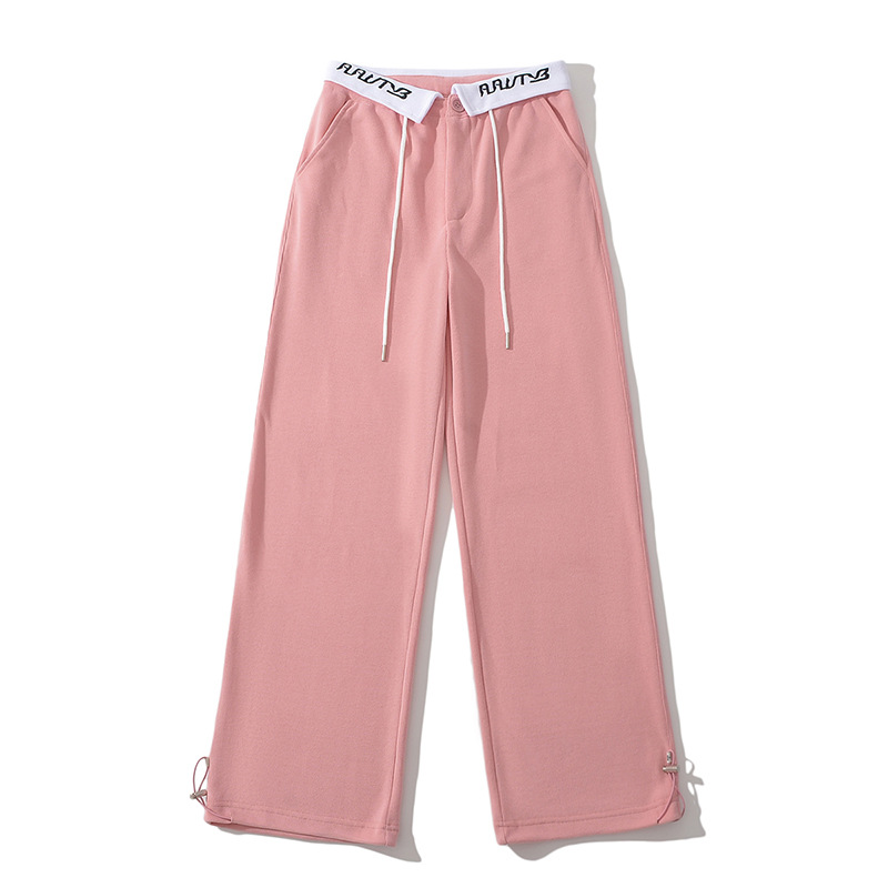 Summer JK210-23 New European and American Style Embroidery Contrast Color Waist Drawstring Straight Loose Casual Pants Trousers