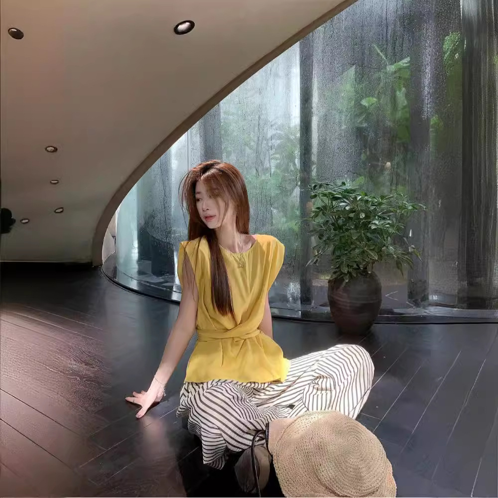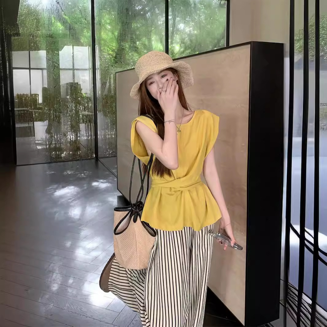 | nameOriginal | Summer Korean Style Strap Kink Loose All-match Waistcoat High Waist Slimming Striped Wide Leg Trousers suit Women |