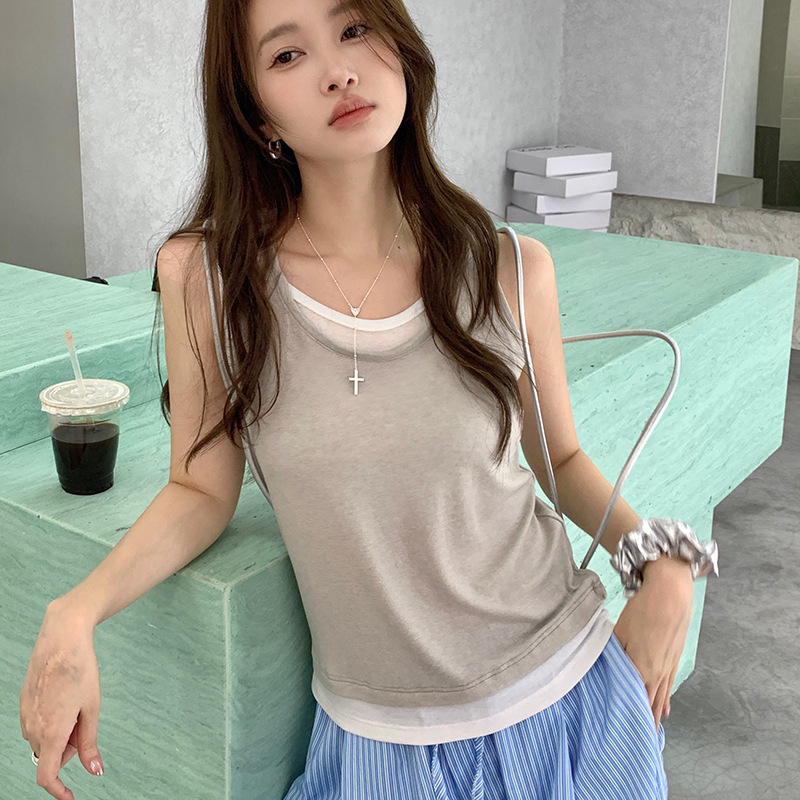 | nameOriginal | Summer Lanjing Tencel Vest Women's Bucket Design Sense Small Sling Outer Wear Fake Two-piece Inner Top Top Base Shirt |