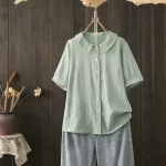 | nameOriginal | Summer large size 200 pounds lazy design niche shirt short-sleeved doll collar loose French age-reducing top |