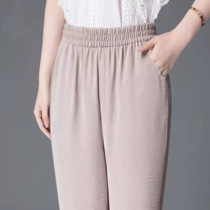 سراويل حريم صيفية كبيرة الحجم وخصر عالي فضفاضة وغير رسمية