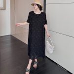 | nameOriginal | Summer large size over-the-knee casual short-sleeved little black dress with lace |