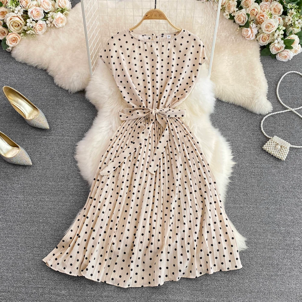 الصيف الناضجة الناضجة مطوية البولكا نقطة القوس اللباس