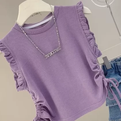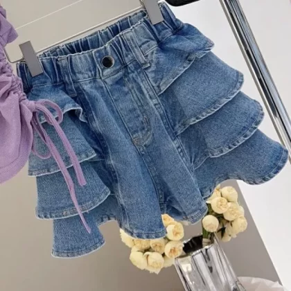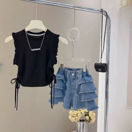 | nameOriginal | Summer little girl's drawstring flying sleeve versatile jeans |