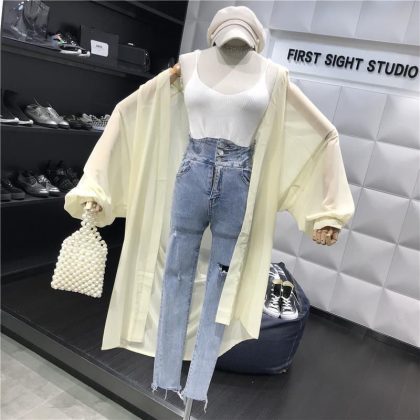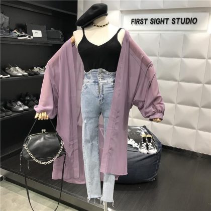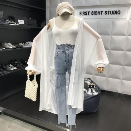 | nameOriginal | Summer long super fairy sunscreen women 200kg chubby girl outside air conditioning chiffon cardigan shawl thin coat tide |