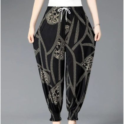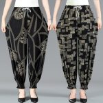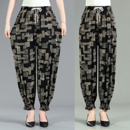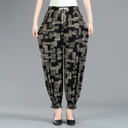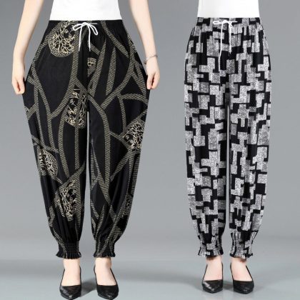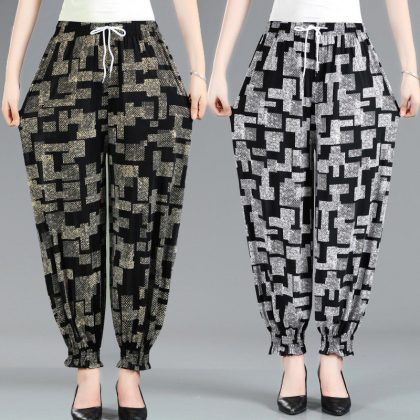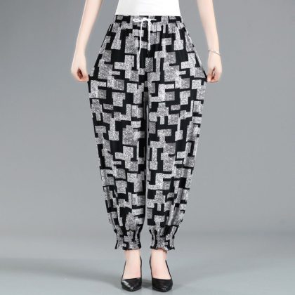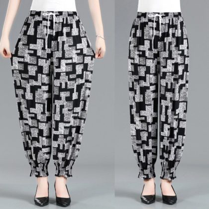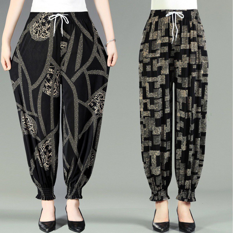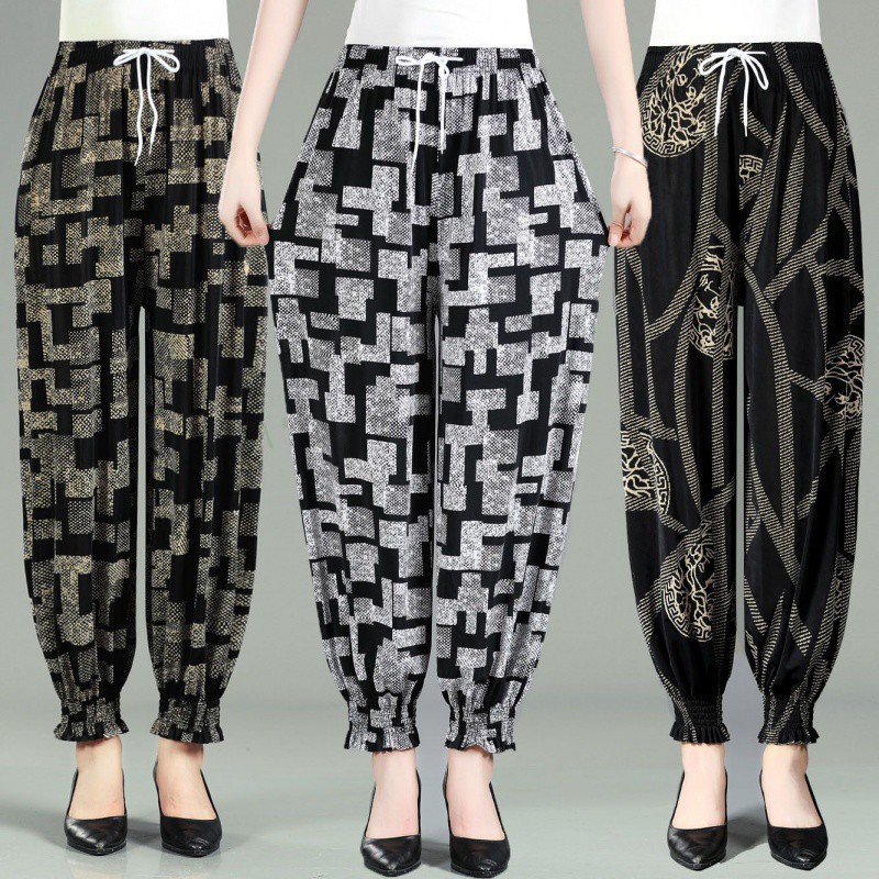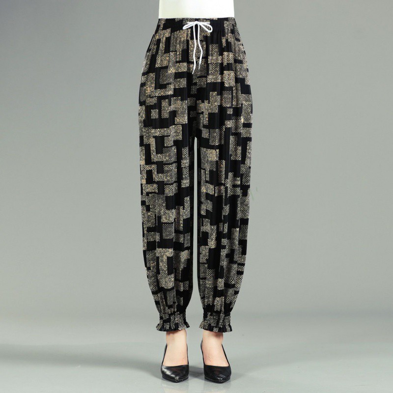 Summer Middle-aged and Elderly Women's Pants High Waist Elastic plus size Mother Flower Pants Girdle Pants Anti-mosquito Pants High-grade Bloomers for Women