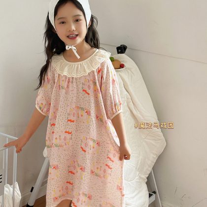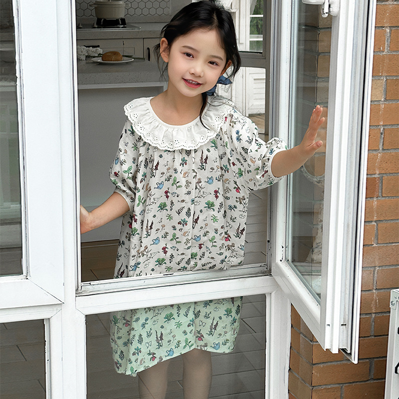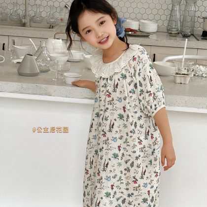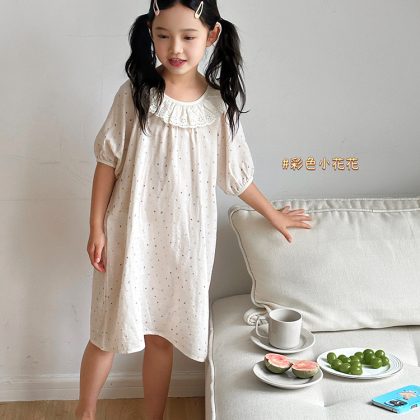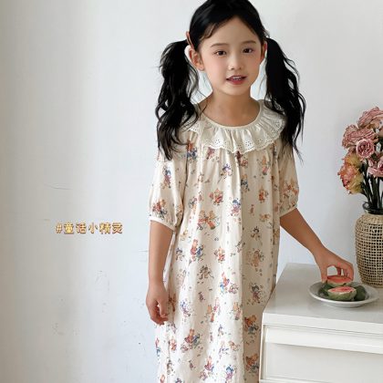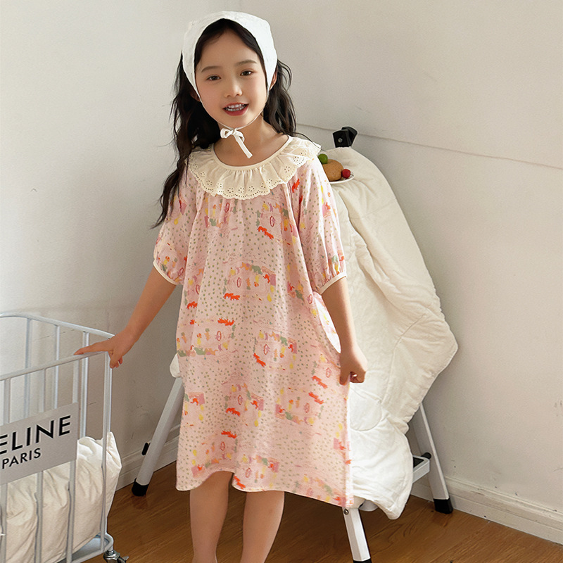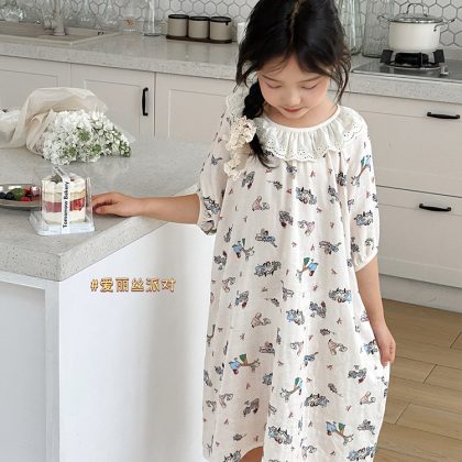 | nameOriginal | Summer New Bamboo Cotton Gauze Nightgown Thin Children's Lovable Style Home Clothes Girl's Lace Doll Collar dress |