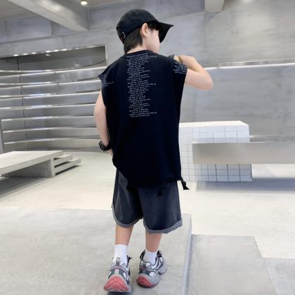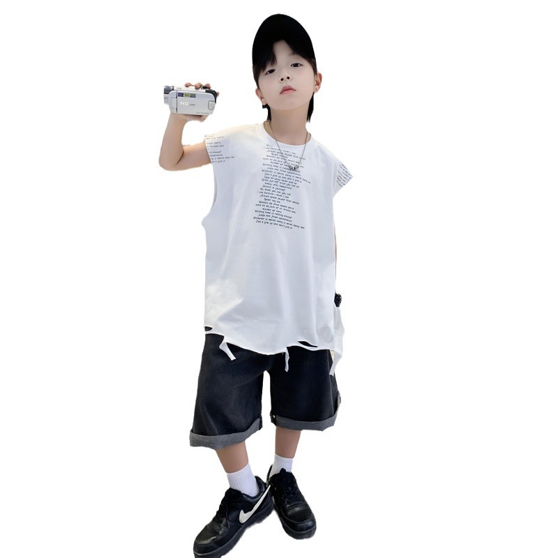 | nameOriginal | Summer New Big Boys Letter Vest Shorts suit Children's Wear Children's Boys Denim Shorts Sleeveless Two-piece Set |