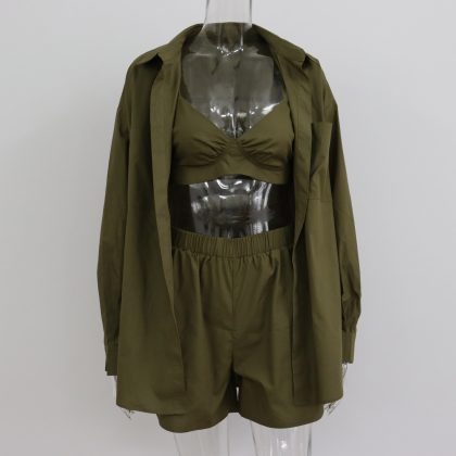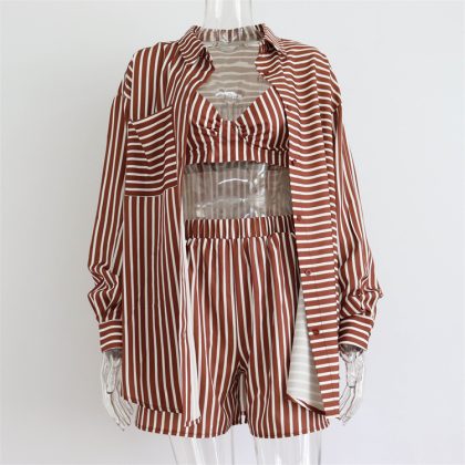 | nameOriginal | Summer new cross-border Europe and the United States three-piece striped single-breasted long sleeve lapel shirt shorts fashion casual suit |
