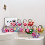 Summer New Fashion Woven Children's Bag Korean Style Sweet Bow Handbag Girls Outdoor Hand Carrying picnic basket