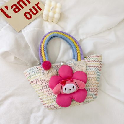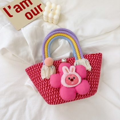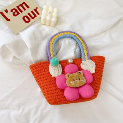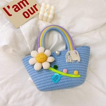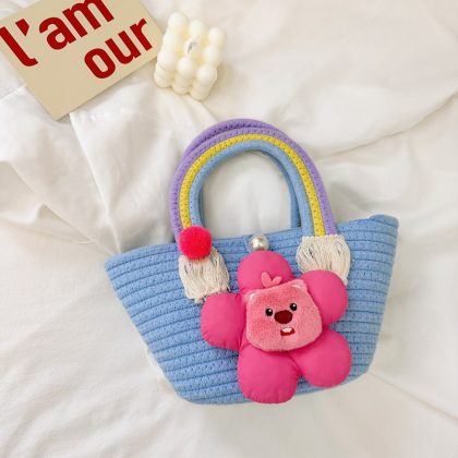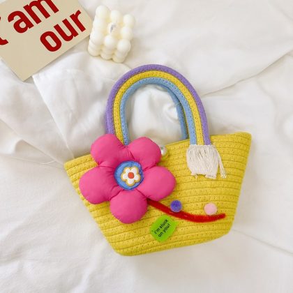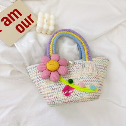Summer New Fashion Woven Children's Bag Korean Style Sweet Bow Handbag Girls Outdoor Hand Carrying picnic basket