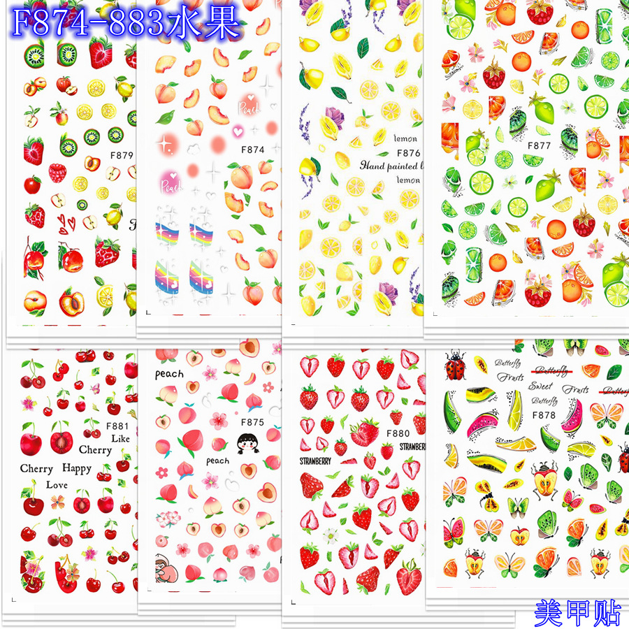 | nameOriginal | Summer new fresh fruit cherry lemon nail stickers color flower nail stickers cross-border live wholesale |