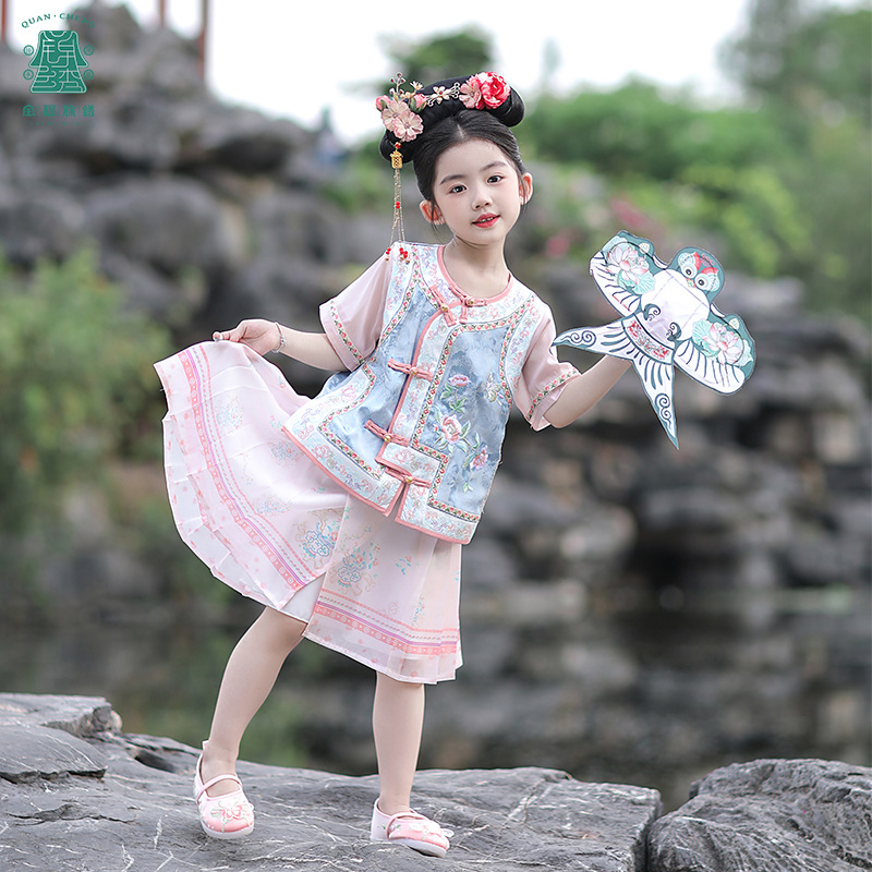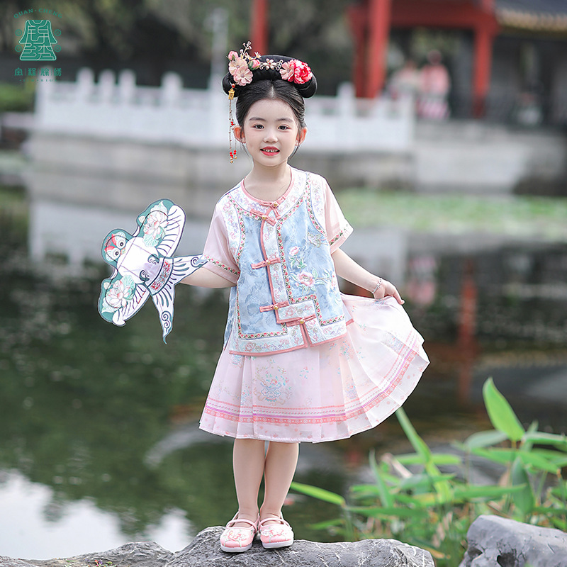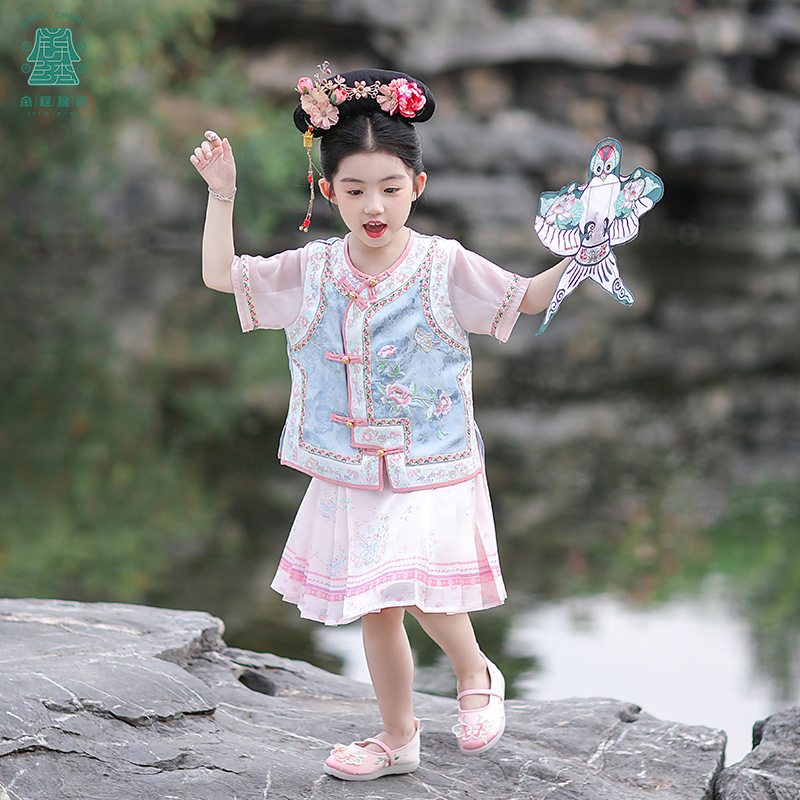 | nameOriginal | Summer new girls antique Hanfu women's Bao Gege clothing children's national style embroidery vest two-piece set a generation of hair |