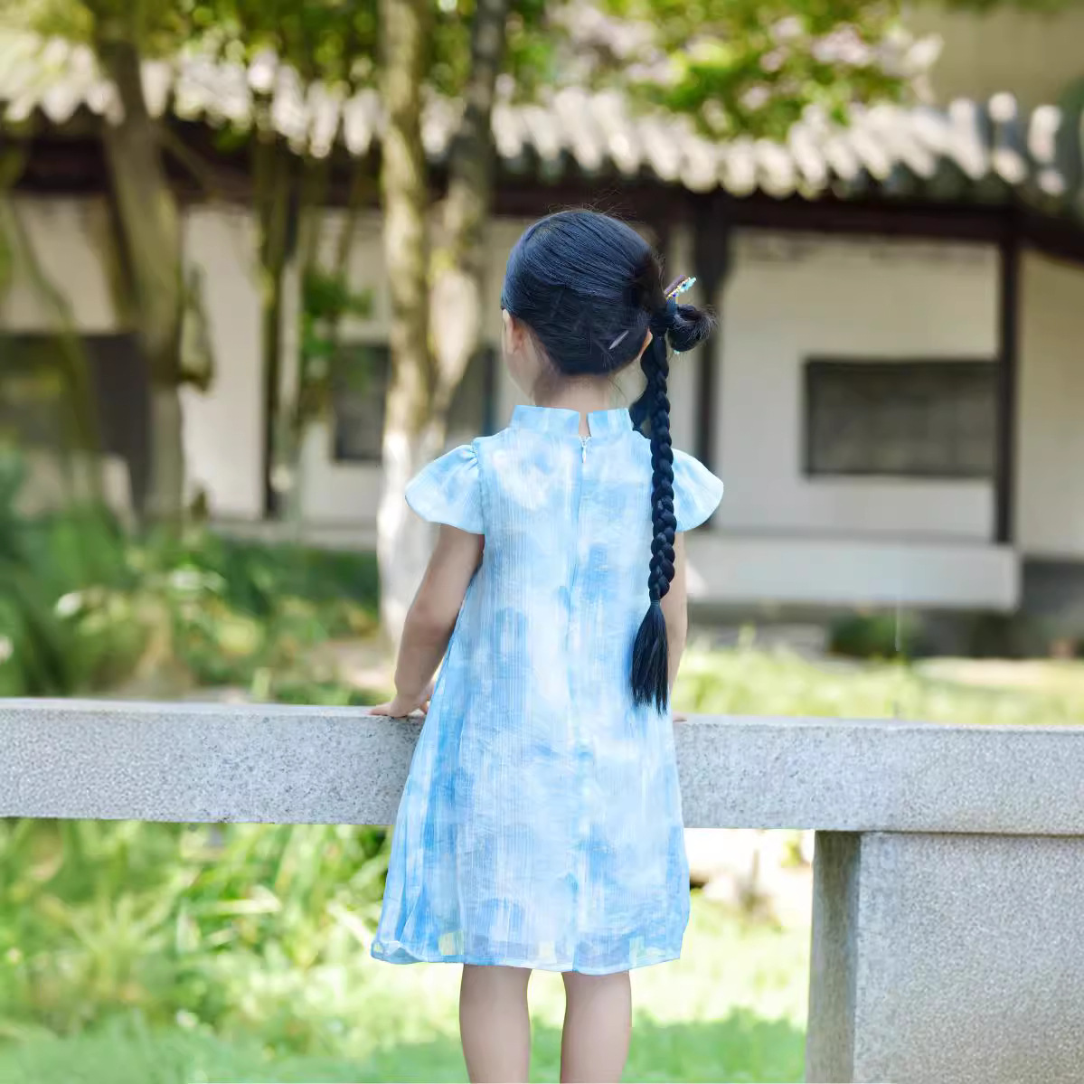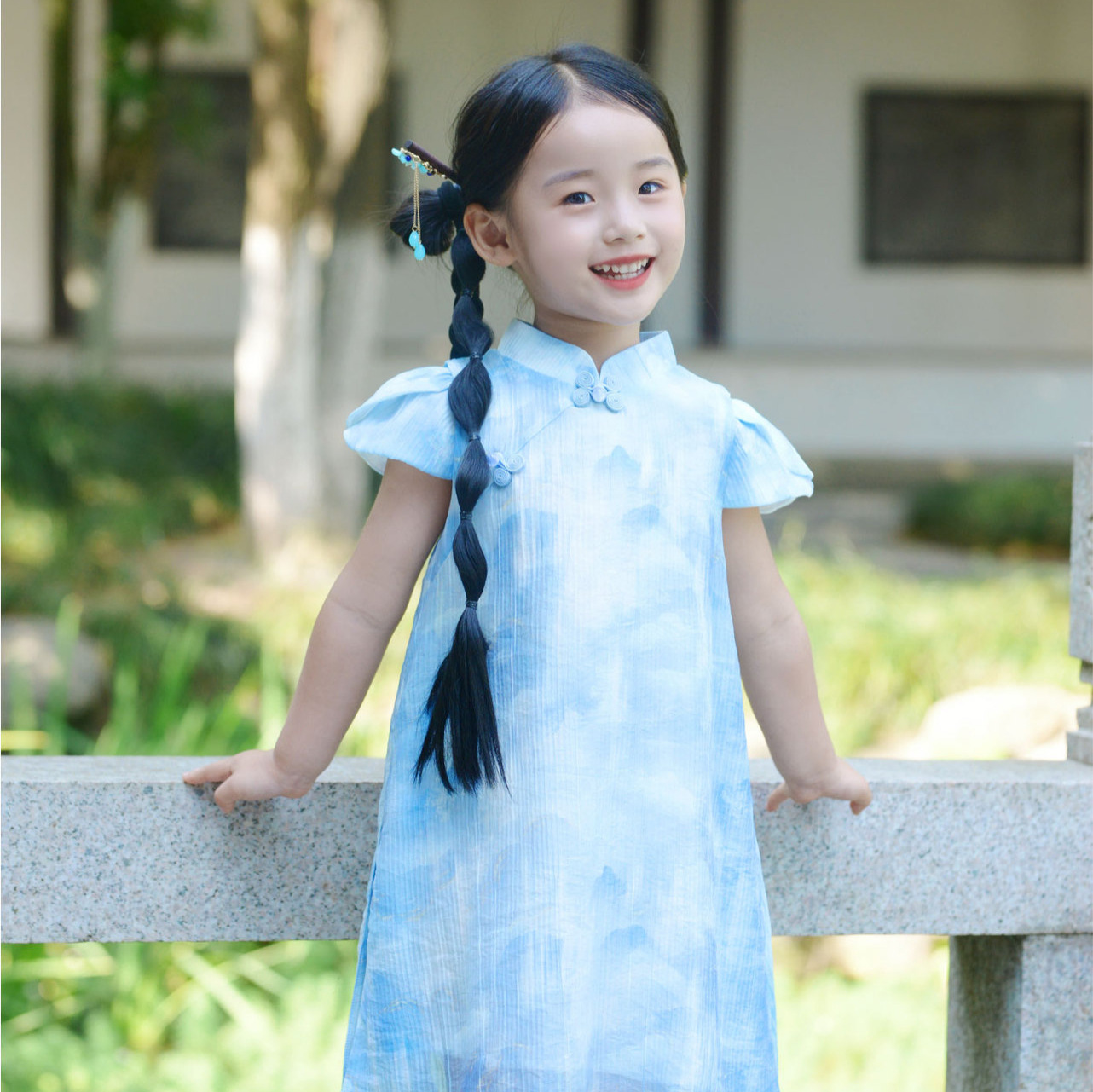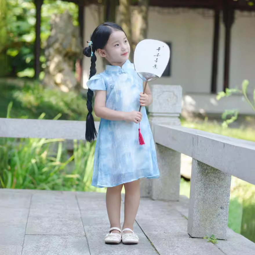 | nameOriginal | Summer New Girls' Blue Small Flying Sleeve Cheongsam Improved Guofeng Dress Sister and Brother's Short Sleeve Set for Boys |