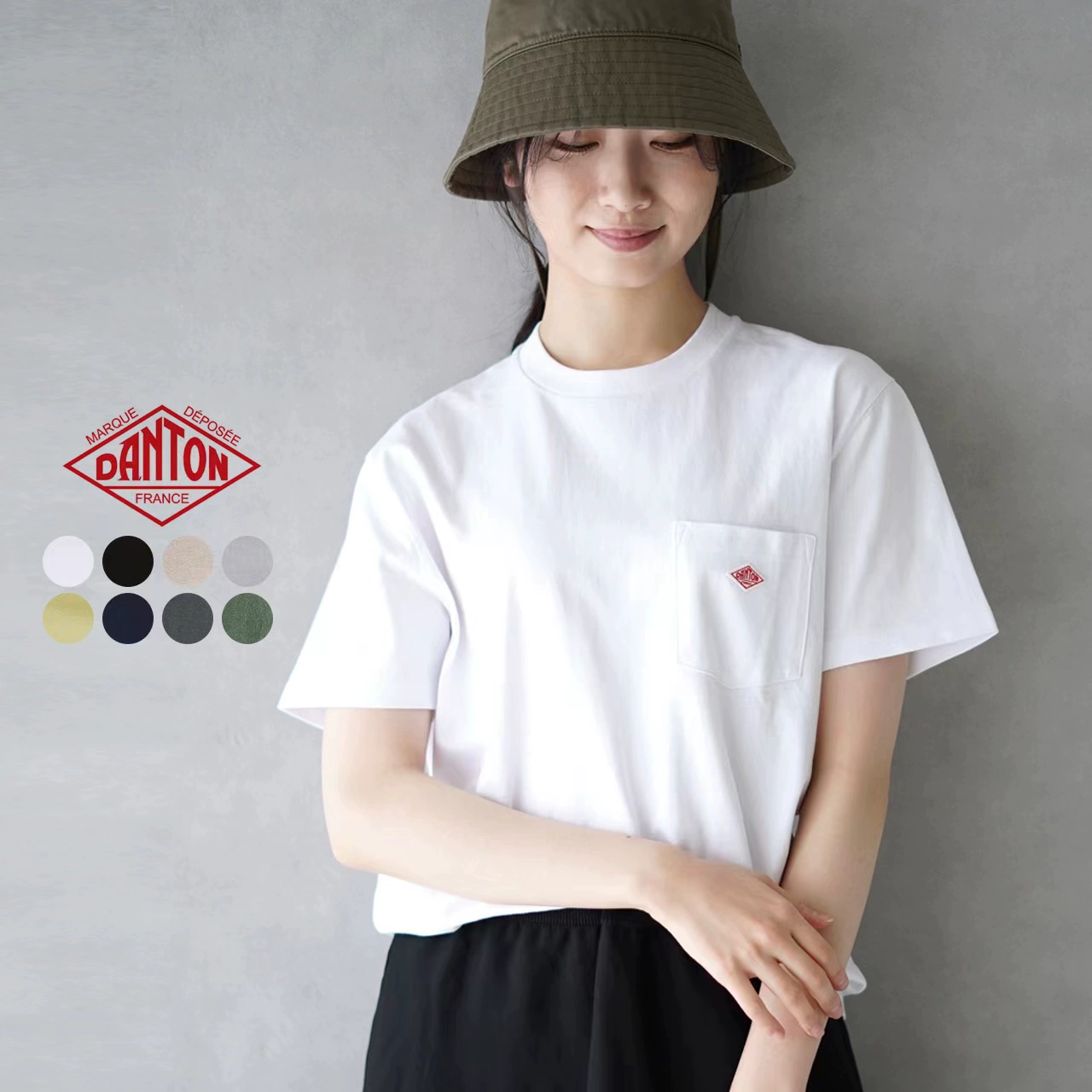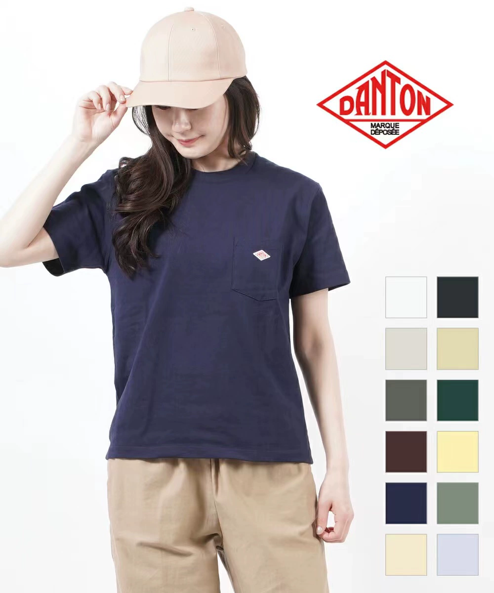 Summer new Japanese DANTON letter pocket embroidery couple short-sleeved solid color casual cotton T-shirt tops
