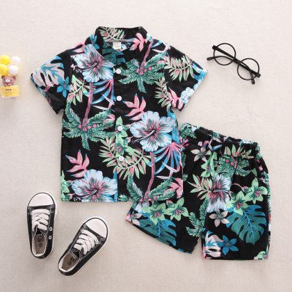nameOriginal | Summer new Korean style boys' casual printed shirt fashionable baby short-sleeved shirt cardigan shorts baby two-piece suit |