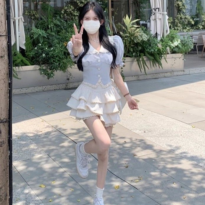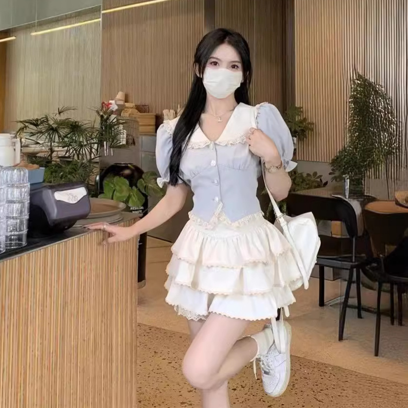 | nameOriginal | Summer New Korean Style Elegant Gentle Style Navy Collar Top Women's High Waist Slimming Niche Age-reducing All-match Skirt |