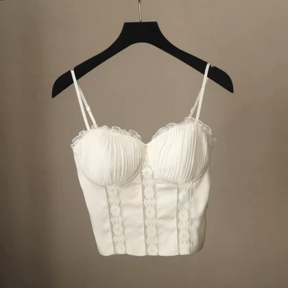 Summer new lace stitching hollow sexy bottoming top solid color with breast pads temperament short camisole