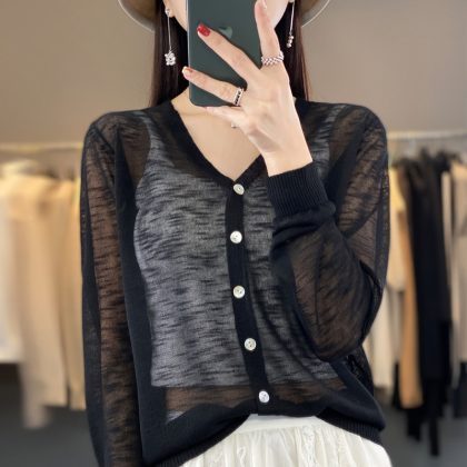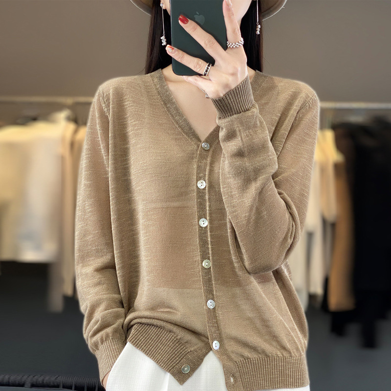 Summer New Linen Ice Silk Knitted Sunscreen Shirt Women's Thin Loose All-match Long-sleeved Cardigan Fashionable Elegant Jacket