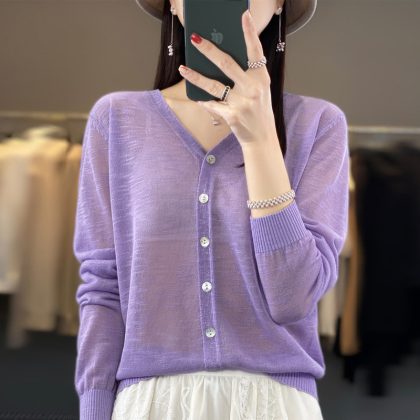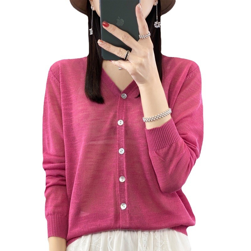 صيف جديد الكتان الحرير الجليد محبوك واقية من الشمس قميص المرأة رقيقة فضفاضة كل مباراة طويلة الأكمام سترة سترة أنيقة عصرية