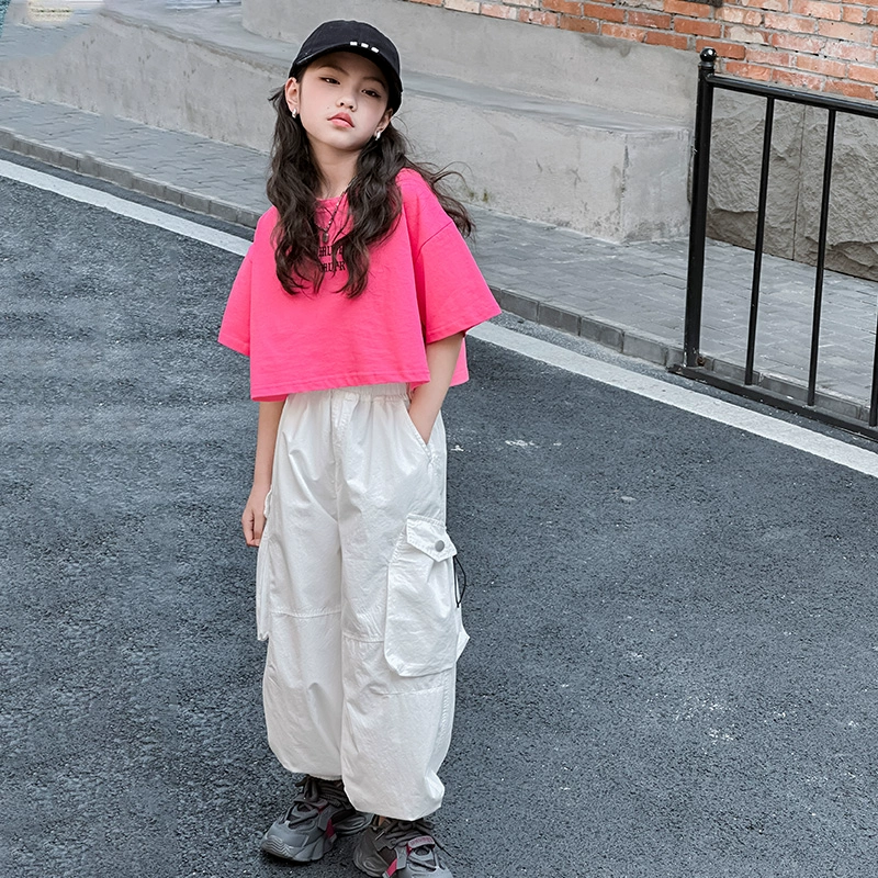 Summer new little girl suit big children short-sleeved T-shirt