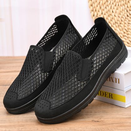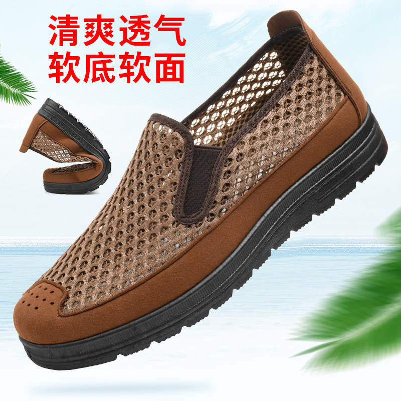 Summer new mesh hollow-out casual men's shoes old Beijing cloth shoes men's soft bottom breathable middle-aged and elderly dad shoes